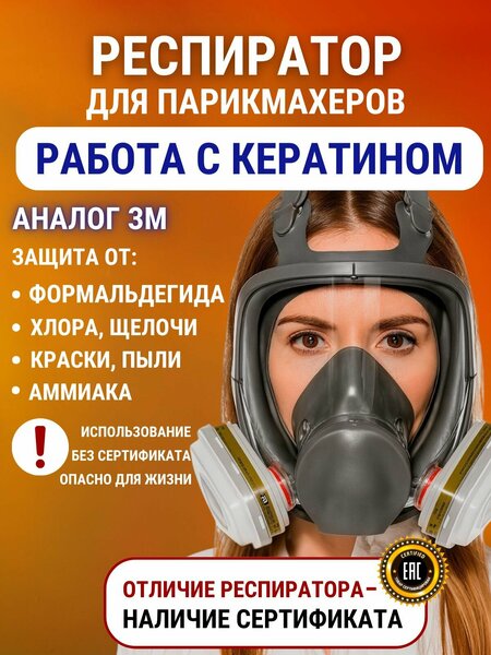 Профессиональный сертифицированный респиратор МС7800 замена 6800 от 3М с фильтрами 6006 А1В1Е1К1 и предфильтрами 5N11CN P1 обеспечит надежную защиту от вредных паров и едких запахов формальдегида и хлора, краски и аммиака, пыли и щелочи. Полнолицевая маска бренда MARTEX обеспечивает плотное прилегание, но не провоцирует натирание, позволяет легко дышать целый день. Противогаз с угольным и пылезащитным, противоаэрозольным фильтром отлично справляется с возложенными на него функциями. В наборе с ним прилагается мешок для хранения комплекта. Это универсальное женское и мужское средство индивидуальной защиты, которое пригодится как в рабочей обстановке, так и в домашнем хозяйстве. СИЗ используется при проведении строительных и садовых или малярных работ, создан с использованием современных технологий. Респиратор очищает воздух от дыма и смол, аллергенов и других вредных химических веществ, позволяя дышать чистым кислородом. Распиратор станет незаменимым союзником в борьбе с аллергией. Маска не препятствует свободному дыханию носом, обеспечивает дополнительную защиту глаз. Респератор может использоваться при покраске и ремонте, опрыскивании и обработке поверхностей бытовой химией, распылении химикатов на даче с максимальной безопасностью для здоровья органов дыхательной системы людей. Респиратор выполнен в прочном корпусе с прозрачным экраном, оснащен качественным пылевым фильтром и легко подвергается регулировке по размеру. Расператор пригодится как маляру, так и работникам парикмахерских, мастерам кератина и маникюра, женщинам и мужчинам других специальностей.