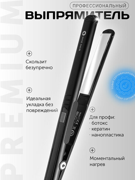 Профессиональный выпрямитель плойка для волос Nice Hair предназначен для профессионального использования и обеспечивает бережную укладку и защиту волос от повреждений. Титановое хромированное покрытие придает волосам блеск и сохраняет их здоровье. Быстрый нагрев и охлаждение: выпрямитель нагревается до максимальной температуры 230°C всего за 30 секунд, а затем быстро остывает, предотвращая потерю тепла. Регулировка температуры: устройство имеет 11 режимов нагрева, что позволяет выбрать оптимальную температуру для каждого типа волос. Плавающие полотна: подвижное крепление полотен к корпусу обеспечивает плотное прилегание к волосам и защиту от их повреждения. Ионизация и увлажнение волос: природные отрицательные ионы, выделяемые минеральным покрытием полотен, увлажняют волосы и избавляют их от статического электричества. Длина шнура 2,5 метра: благодаря такому длинному шнуру, вы сможете свободно перемещаться по комнате, не ограничивая себя в движениях. Защита от перегрева и автоматическое отключение: устройство оснащено функциями защиты от перегрева и автоматического отключения при перепадах напряжения в сети. Дополнительные функции: вращение шнура, дисплей, петля для подвешивания, плавающие пластины. Выбирая профессиональный выпрямитель плойку для волос Nice Hair, вы получаете качественный и функциональный инструмент для создания стильных и здоровых причесок.