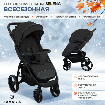 Надежная, практичная, всепогодная прогулочная коляска JOVOLA SELENA предназначена для детей с 6 месяцев до 3 лет и выдерживает нагрузку до 15кг. Это универсальное средство в полной комплектации для передвижения с ребенком как на дальние расстояния, так и на короткие дистанции. Компактная и легкая детская коляска для прогулок и путешествий будет радовать в любое время года и в любую погоду. Складывается книжкой и надежно фиксируется. Удобно хранить и перевозить. Чехол из плотной, двойной водоотталкивающей, не продуваемой ткани, позволяет использовать ее для зимы и лета. А большие задние колеса и передние поворотные с фиксацией, из мягкого материала EVA, делают ее маневренной и проходимой. Они не боятся проколов и не нуждаются в подкачивании. Амортизация пружинная, стояночный тормоз центральный. Спинка регулируется в нескольких положениях. Малыш может не только сидеть, но и комфортно лежать. Дополнит спальное место регулируемая подножка из экокожи. Спальное место 85см*34см. Размеры сиденья коляски-прогулки 23см*34см. В прохладную погоду или дождь можно использовать утепленную 2-х слойную накидку на ножки. Для удобства посадки и высадки маленького пассажира предусмотрена застежка-молния и съемный бампер. Капюшон двойной, складной, с окошком и солнцезащитным козырьком. Защита от ультрафиолета UV30+. Прогулочный сидячий блок не реверсивный. Ручка не перекидная. 5-точечные ремни безопасности с мягкими накладками для комфорта маленького пассажира и защиты от сползания. Родительская ручка нескользящая, выполнена из экокожи. Для багажа или покупок предусмотрена открытая сетка корзина. Для мелочей и игрушек имеется кармашек. Светоотражатели на капюшоне, корзине и ремнях делают коляску более заметной в темное время суток. В комплекте все необходимые аксессуары для летнего и зимнего варианта: москитная сетка, дождевик, держатель подстаканник для бутылочек, утепленная накидка для ног. Недорогие, стильные, демисезонные коляски SELENA имеют широкий ассортимент цветовых решений, для мальчика и девочки.