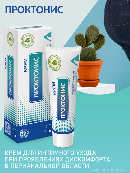 Косметическое средство для интимного ухода при проявлениях дискомфорта в перианальной области. Оптимальное сочетание активных компонентов обеспечивает взаимное усиление их действия, благодаря которому крем можно применять для профилактики геморроя, при дискомфорте в области ануса. Состав биокомпонентов глубоко питает кожу, препятствует потере влаги, смягчает роговой слой, поддерживает эластичность кожи области вокруг ануса, обладает ранозаживляющими свойствами, регенерирует и восстанавливает поврежденную поверхность кожи, поддерживает тургор, возвращает эластичность, предотвращая образование трещин и возникновение функциональных проблем. Геморрой — распространенное заболевание, которое становится причиной обращения к врачу-проктологу. Геморрой известен «неудобными» проявлениями – дискомфортом в области заднего прохода, ощущением инородного тела, анальным зудом, жжением в проекции прямой кишки и анального отверстия. При прогрессировании геморроя могут появиться анальные трещины и другие осложнения. Кожа вокруг анального отверстия (в перианальной области) тоньше, чем на других частях тела. Раздражающие факторы и несоблюдение личной гигиены часто приводят к дискомфорту или усугублению имеющихся проблем. Крем можно применять при зуде, жжении, дискомфорте в области ануса и предупреждения образования анальных трещин. Благодаря специально разработанной формуле активные компоненты "проктонис" крема оказывают комплексное воздействие на нежную тонкую кожу перианальной области, питая ее, препятствуя потере влаги, поддерживая эластичность кожи и предупреждая возникновение функциональных проблем. В состав входят растительные экстракты (гамамелиса, тысячелистника, алоэ вера), масло какао, сквалан. "Проктонис" крем не содержит гормонов. Насадка-аппликатор в комплекте проктонис крема обеспечивает удобное применение и экономный расход. Описание компонентов: Масло касторовое усиливает проникновение остальных компонентов в поражённые участки ткани, оказывает смягчающий эффект. Масло какао обладает заживляющим и тонизирующим действием на кожу. Сквалан — гидрированная форма сквалена - естественного защитного компонента кожи. Формирует на коже защитный барьер, придает коже эластичность и ускоряет её регенерацию. Алоэ вера экстракт содержит гликопротеины и полисахариды, которые ускоряют заживление тканей и оказывают противовоспалительное действие. Ускоряет процессы регенерации, увеличивает синтез коллагена, имеет антиаллергический и бактерицидный эффект, тонизирует и увлажняет кожу. Гамамелиса вирджинского экстракт применяется как кровоостанавливающее средство. Биологически активные вещества гамамелиса способствуют снижению воспаления и облегчению болевых ощущений. Тысячелистника экстракт - обладает кровоостанавливающим, противовоспалительным, бактерицидным свойствами. Витамин Е — основной антиоксидант кожного барьера, улучшает эпителизацию, питает и смягчает, обладает противовоспалительной активностью. Бисаболол — вещество, получаемое из ромашки аптечной. Обладает антимикробным, противовоспалительным действием, успокаивает, снимает раздражение. Для комплексной поддержки изнутри и снаружи при симптомах, сопровождающих геморрой, рекомендуется совместное использование проктонис ульт