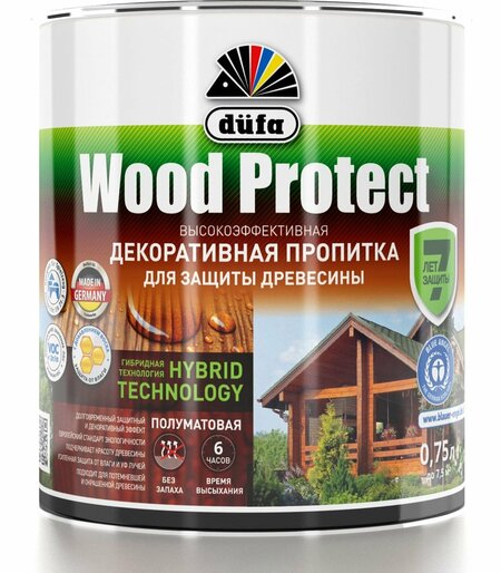 Пропитка декоративная для защиты древесины Dufa Wood Protect белая 0,75 л - это высококачественное средство для обработки древесины, которое обеспечивает непревзойденную защиту и экологичность. Декоративная и погодостойкая пропитка на акрилово-алкидной основе подходит для внутренних и наружных работ, а также для тропической древесины. Новая технология гибридного связующего позволяет использовать ее на большинстве лиственных и хвойных пород деревьев. Твердый воск и натуральные масла в составе обеспечивают водонепроницаемость, прочность и гидрофобный эффект поверхности. Пропитка рекомендуется наносить в два слоя при температуре от +10°C до +25°C и относительной влажности воздуха от 40% до 80%. Пропитка Dufa Wood Protect имеет полуматовую степень глянца, лессирующее покрытие и УФ защиту. Расход указан для одного слоя: строганая древесина - около 10-15 м²/л, пиленая древесина - около 6-8 м²/л. Особенности продукта включают антисептик и водозащиту. Вид покрытия - лессирующий, а степень глянца - полуматовая. УФ защита присутствует, а пропитка подходит для внутренних работ. Объем упаковки составляет 0,75 литра, а цвет товара - белый. Следует избегать проведения работ при прямом воздействии солнечных лучей. Выбирая пропитку декоративную для защиты древесины Dufa Wood Protect, вы получаете надежное и долговечное покрытие для вашего деревянного изделия.