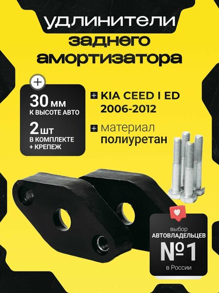 Проставки увеличения клиренса опор задних амортизаторов для моделей KIA CEED, I, ED,2006-2012 Проставки увеличения клиренса -самый надежный и простой способ увеличить дорожный просвет . Проставки под пружины, под стойки и амортизаторы изготовлены из высокопрочного полиуретана методом литья под давлением. Этот метод позволяет изготовить проставки без пор и зазоров, обеспечить точность литья до 1 мм, высокое качество. Полиуретановые проставки устойчивы к агрессивным средам, имеют жёсткость и необходимую эластичность, в отличие от проставок, изготовленных из алюминия и ABS пластика. Проставки для увеличения клиренса имеют сертификат качества продукции и не несут никаких отрицательных воздействий на углы привода, натяжение тормозных шлангов и напряжение сайлентблоков. Проставки ( правая и левая) установочный крепёж где необходимо . Ось установки задняя. Торговая марка Clearance plus