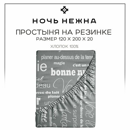 Простынь на резинке 120х200 см ТМ Ночь Нежна Письма, 100% хлопок, ткань бязь