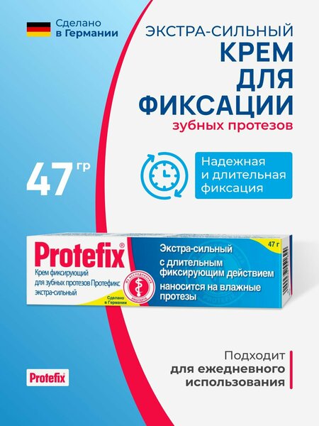 Protefix фиксирующий крем экстра-сильный гипоаллергенный - это специальное средство для фиксации и крепления съемных зубных протезов. Он устраняет неудобства, вызываемые несовершенствами протезов, и обеспечивает комфортное использование в течение долгого времени. Фиксирующий крем не содержит опасных ингредиентов и предназначен для людей, чувствительных к аллергенам и раздражителям. Специальная формула крема предотвращает рост бактерий и образование неприятных запахов. Систематическое использование Protefix фиксирующего крема экстра-сильного гипоаллергенного помогает сохранить чистоту и безопасность зубных протезов на длительное время, а также обеспечивает чувство свежести и комфорта на весь день.