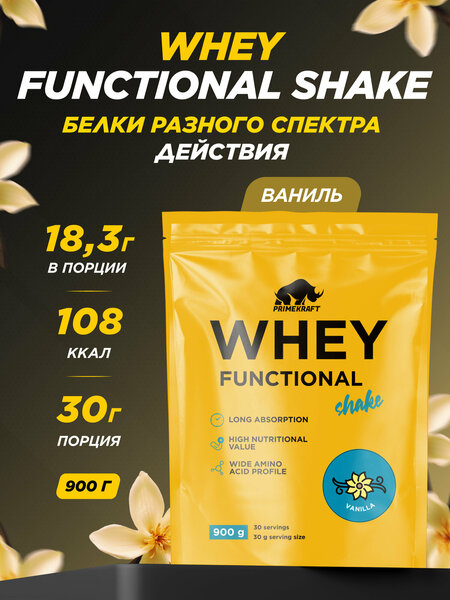 Whey Functional Shake Vanilla – многофункциональный вкусный протеиновый коктейль с высоким содержанием аминокислот, идеально восполняющий баланс белка в организме для строительства мышечных волокон и похудения. Включает в себя два контрастных источника белка - концентрат сывороточного белка (быстрый белок животного происхождения) и изолят соевого белка (медленный белок растительного происхождения), что позволяет обеспечить постоянное поступление аминокислот к мышцам, продлить период насыщения и быстро восстановить мышцы после тренировки. Эффект от применения: · Способствует восполнению максимально высокого уровня аминокислот для строительства мышечных волокон; · Уникальный состав комплекса направлен на построение сухой мышечной массы и уменьшение жировой прослойки, что поможет добиться четкого рельефа; · Обеспечивает долгое ощущение сытости, стимулируя организм сжигать внутренние запасы подкожного жира; · Дополнительный источник белка, который восполнит ежедневную нехватку данного макронутриента. Преимущества: · Обеспечивает организм белками разного спектра действия одновременно: быстрыми и медленными. Быстрые белки способствуют интенсивному синтезу аминокислот в мышцах сразу после тренировки, восстанавливая их и стимулируя их рост. Когда заканчивается фаза действия быстрого протеина, благодаря медленным белкам к мышцам продолжают поступать аминокислоты, предотвращая их распад. Медленные белки насыщают организм в течение долгого периода, что безупречно подходит для похудения и для работы на рельеф. · Состав комплекса обогащён пребиотическим волокном для улучшения пищеварения, нормализации микрофлоры кишечника и поддержания жизнедеятельности полезных бактерий ЖКТ. · Вкусный, приятный коктейль с глубоким сливочным вкусом какао-бобов. Способ применения: Смешайте одну мерную ложку (30 г) с 200-250 мл воды, обезжиренного молока или другого напитка (в зависимости от вкусовых предпочтений). Рекомендуется принимать до 3-х порций в сутки, в зависимости от рациона питания и потребности организма в белке. Можно использовать как ингредиент диетических блюд, в том числе десертов.