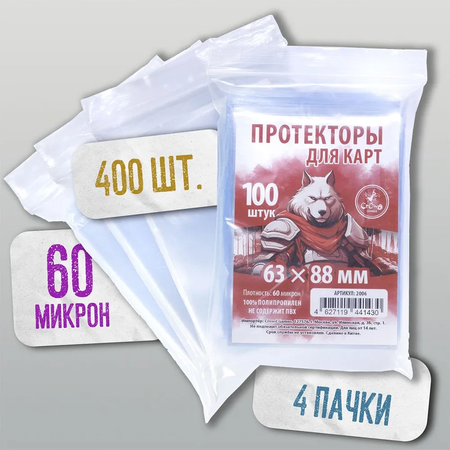 Размер карт: 63 × 88 мм. Внешний размер протектора: 65 х 89 мм. Толщина: 60 микрон. Количество штук в упаковке: 100 шт. Протекторы помогут защитить карты от внешних воздействий, облегчить и ускорить их перемешивание, а также предотвратить истирание. А ещё защищают ваши карты от попадания мелкого мусора и влаги. Эти протекторы подойдут для множества ваших любимых игр. Перечень игр, к которым подходят данные протекторы (согласно нашим примеркам и отзывам покупателей): «Чёрная соната», «Путь героя», «Brass. Бирмингем», «Brass. Ланкашир», «Кромешная тьма», «Саграда», «Корни», «Команавты», «Сундук войны», «Мельница. Уютные истории», «Плюшевые сказки», «О мышах и тайнах», «Это моя война», «Мёртвый сезон», «Седьмое поколение», «Рэксон», «Таблица Менделеева», «Тайная власть», «Сезоны», «Перекрёстный огонь», «Покорители космоса», «О хвостах и перьях», «Криптид», «Сопротивление», «Монстр по соседству», «Миры Ктулху», «Крепость Маджонг», «Тайны Аркхэма», «За бортом», «7 самураев», «Дуэль двух миров», «Кланк!», «Место преступления», «Генералы», «На марсе», «Лондон», «Робин Гуд», Last Will, Cristal Palace, Trismegistus, Rival Restaurants и многие другие. Так же, эти протекторы подойдут для большинства ККИ, включая Magic The Gathering (MtG). Внимание! Длина протектора может отличаться от заявленной в рамках ±0,5 мм, что является допустимой погрешностью.
