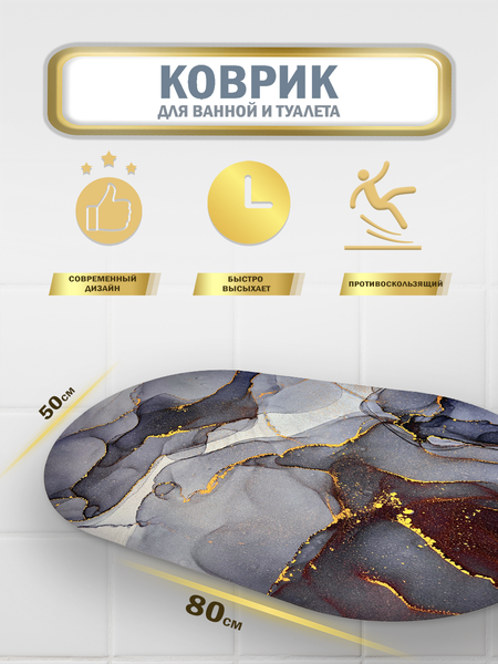 Противоскользящий влагопоглощающий коврик в ванную комнату: комфорт и безопасность Противоскользящий влагопоглощающий коврик в ванную комнату обеспечивает комфорт и безопасность во время принятия водных процедур и чистки зубов. Благодаря антискользящему покрытию, коврик не скользит даже по глянцевым гладким поверхностям, обеспечивая стабильность и уверенность в каждом движении. Влагопоглощающий материал: быстросохнущий и долговечный Коврик изготовлен из прочного материала Nappa leather, который предназначен для эксплуатации в помещениях с повышенной влажностью. Впитывающая поверхность быстро сохнет и надолго сохраняет внешний вид, обеспечивая комфорт и безопасность в процессе использования. Внутренняя вставка из пены с эффектом памяти: сохраняет тепло и комфорт Коврик удобен и мягок, а внутренняя вставка из пены с эффектом памяти позволяет сохранять тепло и не соприкасаться с холодной плиткой и кафелем в ванной комнате. Это обеспечивает дополнительный комфорт и уют во время использования. Прямоугольная форма и принтованная коллекция: стиль и уют Уютная и стильная коллекция ковриков для декора вашей ванной комнаты и туалета Ridberg Мрамор. Влагопоглащающие коврики с силиконовой пропиткой, имеют антискользящее покрытие и являются идеальным аксессуаром для использования в ванной комнате ведь не скользят даже по глянцевым гладким поверхностям. Впитывающая поверхность прочного материала приятная на ощупь. Материал Nappa leather предназначен для эксплуатации в помещениях с повышенной влажностью, быстро сохнет и надолго сохраняет внешний вид, обеспечат комфорт и безопасность в процессе принятия водных процедур или чистке зубов. Коврик удобный и мягкий, внутренняя вставка - из пены с эффектом памяти, что позволяет сохранять тепло и не соприкасаться с холодной плиткой и кафелем в ванной комнате. Комфортные и мягкие ковры для ванной и санузлов прямоугольной формы произведены специально для создания уютных зон в вашей квартире. Принтованная коллекция паласов изготовлена для декора вашей ванной комнаты с учетом самых важных критериев подбора для покупателя: стиль, цена и качество. сть во время водных процедур, а также стильный и уютный интерьер вашей ванной комнаты.