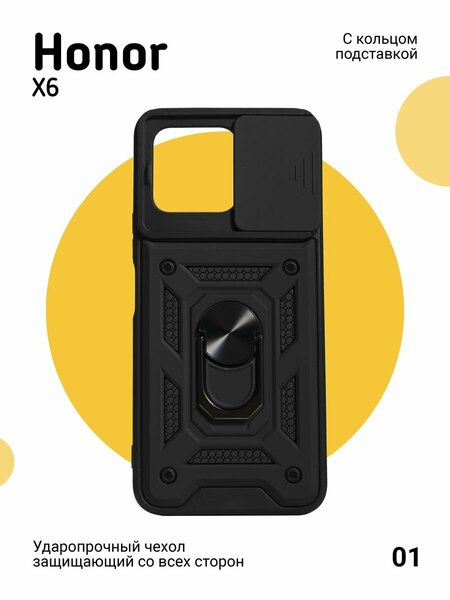 Противоударный Чехол на Honor X6 с магнитом и кольцом, черный