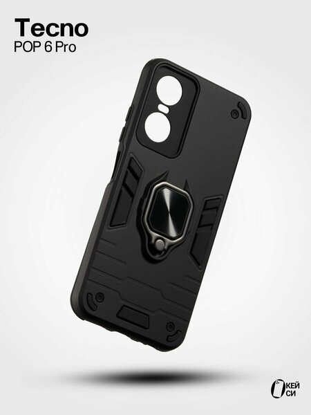 Противоударный Чехол на Tecno Pop 6 Pro с кольцом-магнитом, черный