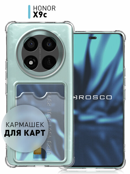 Противоударный чехол с картхолдером изготовлен специально под модель телефона Honor X9 C, поэтому плотно надевается, соответствуя всем изгибам, разъёмам и кнопкам. За счёт усиленных углов между углами чехла и телефона есть воздушная подушка для амортизации при ударах. Над дисплеем и камерами выступают эти углы и небольшие бортики, снижая вероятность появления сколов и царапин. Сам чехол сделан из TPU: этот материал лучше силикона: более упругий, гибкий и прозрачный. На поверхность чехла нанесена противоразводная сетка: благодаря ей чехол не прилипает к телефону, нет мокрых пятен. Также сзади есть кармашек: положите в него банковскую карточку, и она заменит оплату по NFC. Помимо банковских карт этот карман используют для хранения пропусков, дисконтных, транспортных и проездных. Чехол ROSCO заменит визитницу для карт или бумажник: узкий кармашек плотно держит карточку, поэтому не стоит бояться, что вы её потеряете. Для того, чтобы карточка срабатывала без сбоев, не нужно каждый раз её вынимать: расположите её в кармане чипом вверх и отключите NFC на телефоне. Защитное стекло для вашей модели смартфона Хонор Х9 С вы найдете по коду товара: вставить.
