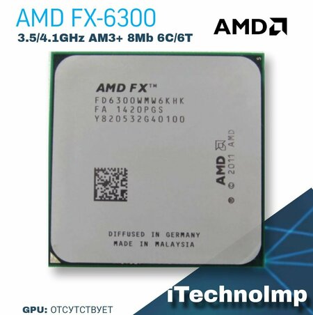 Основное Серия FX Кодовое название Vishera Разъем (Socket) AMD AM3+ Техпроцесс 32 нм Ядра и потоки Кол-во ядер 6 cores Кол-во потоков 6 threads Частота Тактовая частота 3.5 ГГц Частота TurboBoost / TurboCore 4.1 ГГц Объемы кэш памяти 1-го уровня L1 288 КБ 2-го уровня L2 6 МБ 3-го уровня L3 8 МБ, Характеристики Модель IGP отсутствует Тепловыделение (TDP) 95 Вт Поддержка инструкций MMX, SSE, SSE2, SSE3, SSE4 Свободный множитель Макс. рабочая температура 71 °С Поддержка памяти Макс. объем 128 ГБ Макс. частота DDR3 1866 МГц Число каналов 2 шт