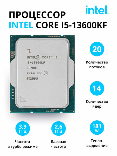Процессор Intel Core i5-13600KF - это мощный и надежный выбор для вашего компьютера. Он обеспечивает высокую скорость обработки информации и непревзойденное быстродействие, благодаря 14 ядрам и 20 потокам. Процессор работает на тактовой частоте 3500 МГц, что гарантирует его высокую производительность. Тепловыделение составляет всего 125 Вт, что делает его энергоэффективным решением для вашего ПК. Процессор Intel Core i5-13600KF устанавливается в LGA1700 Socket, что обеспечивает его легкую установку в ваш компьютер. Процессор поддерживает двухканальный режим работы, что позволяет использовать две планки оперативной памяти одновременно. Максимальный объем памяти составляет 128 ГБ, что позволяет работать с большими объемами данных. Процессор Intel Core i5-13600KF поддерживает версию PCI-Express 5.0, что обеспечивает высокую скорость передачи данных между компонентами вашего компьютера. Процессор Intel Core i5-13600KF является игровым процессором, что делает его отличным выбором для геймеров. Он обеспечивает высокую производительность и надежность, необходимые для современных игр. Процессор Intel Core i5-13600KF был выпущен в четвертом квартале 2022 года, что делает его актуальным и современным решением для вашего компьютера.