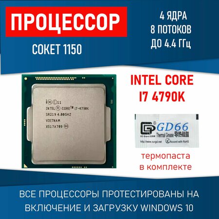Внимание: множитель процессора Intel Core i7 4790K разблокирован, что позволяет использовать разгон процессора и делает его самым производительным процессором I7 на сокете 1150. Процессор Intel Core i7 4790K обеспечивает достаточную производительность для большинства задач, включая игры, редактирование видео и работу с графикой, имеет 4 ядра и 8 потоков, основан на 32-нанометровой технологии и работает на базовой частоте 3.4 ГГц с возможностью ускорения до 3.9 ГГц при использовании технологии Turbo Boost. Объем кэш-памяти составляет 8 МБ (кэш L3). 4790 поддерживает двухканальную оперативную память DDR3 с максимальной частотой 1600 МГц и максимальным объемом 32 ГБ. Тепловой пакет (TDP) процессора составляет 77 Вт.