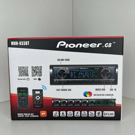 Процессорная автомагнитола 1 din для авто MVH-933BT / мощность 60W расширенный эквалайзер / с Bluetooth, AUX, USB/ управление с приложения