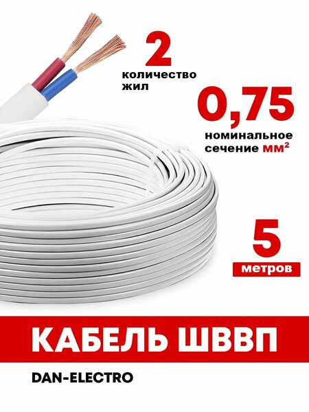 Провод ШВВП 2х0,75 5 метров - это электрический кабель, который обеспечивает надежное и безопасное подключение электроприборов. Он изготовлен из меди, что гарантирует его долговечность и высокую проводимость. Конструкция провода представляет собой плоский многожильный медный кабель с сечением 0,75 мм2. Это обеспечивает гибкость и удобство при монтаже. Изоляция и оболочка провода выполнены из ПВХ, что делает его устойчивым к воздействию влаги и механическим повреждениям. Цвет товара - белый, что позволяет ему гармонично вписываться в любой интерьер. Провод ШВВП 2х0,75 5 метров предназначен для использования внутри помещений. Он подходит для подключения электроприборов с низкой потребляемой мощностью, монтажа освещения и слаботочных систем, а также для подключения видеонаблюдения. Номинальное напряжение кабеля составляет 380 В, что делает его подходящим для большинства бытовых и промышленных нужд. Кабель не поддерживает горение, что обеспечивает дополнительную безопасность при его использовании. Длина провода составляет 5 метров, что позволяет использовать его в различных условиях. Выбирая провод ШВВП 2х0,75 5 метров, вы получаете надежный и качественный продукт, который обеспечит стабильное и безопасное подключение ваших электроприборов.