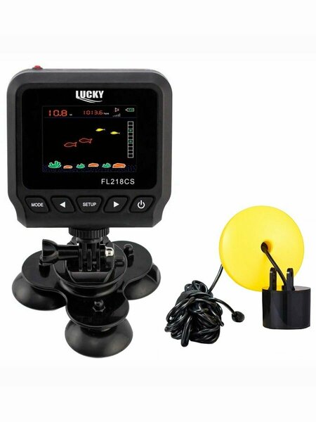 LUCKY Portative Fish Finder FL218CS-T – это портативный эхолот с проводным датчиком для рыбалки с берега и с лодки, способный определять местонахождение рыбы, показывать ее размер и глубину до нее, измерять атмосферное давление, температуру воды и воздуха, а также отображать рельеф дна водоема. Датчик обладает углом сканирования - 45° и частотой 200 кГц. Глубина сканирования составляет до 100 метров. Конструкция прибора готова к применению сразу, не требуется подключать к ней смартфоны или иные гаджеты, проводить синхронизацию с ними или устанавливать репитеры для улучшения сигнала.