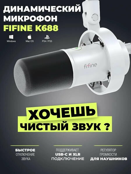 ️ Ищете идеальный микрофон для ПК, который подчеркнет вашу уникальность в эфире и обеспечит студийное качество звучания? Познакомьтесь с Fifine K688 USB/XLR — динамическим микрофоном, который не только подходит для подкастов, стримов и озвучки, но и идеально удовлетворяет потребности геймеров благодаря своей универсальности и насыщенному звуку. Если вы не знаете, какой микрофон лучше для ваших нужд, этот микрофон — именно то, что вы искали. Ключевые особенности Fifine K688: Эргономичный дизайн: Этот микрофон для компьютера и ноутбука создан таким образом, чтобы вы могли концентрироваться исключительно на вашем творчестве, не отвлекаясь на настройки и помехи. Профессиональный микрофон с качественным кардиоидным капсюлем обеспечит четкость и насыщенность вашего голоса. Универсальное подключение: Fifine K688 предлагает як USB, так и XLR подключение, что делает его универсальным микрофоном. Опция подключения через USB 2.0 микрофон делает его доступным для всех пользователей, а XLR разъем выступает замечательным выбором для профессиональных студийных настроек. Это открывает доступ к более широкому звуковому диапазону и глубокому погружению в творческий процесс. Простота использования: Один из лучших аспектов этого устройства – оно не требует сложных настроек для начала работы. Это настроенный микрофон, который будет работать "из коробки", идеально подходя для новичков и профессионалов, пытающихся купить хороший микрофон без головной боли. Поддержка для игр и общения: Идеален как игровой микрофон, Eго можно использовать в популярных платформах, таких как Discord или Skype, делая его незаменимым в вашем игровом арсенале. В то же время gaming микрофон займет свое достойное место среди других аксессуаров благодаря своей эффективности и надежности. Многофункциональность и гибкость: Это микрофон для стрима и подкастов, благодаря чему его также можно назвать голосовым микрофоном, способным передать атмосферу и эмоции любой речи. Этот микрофон для дома и студии создаст идеальные условия для вашего проекта. Fifine K688 предлагает не только эргономичный дизайн и универсальные параметры микрофона, но и гарантирует надежность благодаря своему фирменному качеству. Если вы задаетесь вопросом, какой микрофон использовать для стрима или подкаста – это определенно ваш выбор. Купить микрофон для ПК сегодня – значит дать старт новым творческим достижениям и проектам. Решение купить fifine — это выбор в пользу профессионализма, звучания высшего класса и простоты использования. Не упустите шанс сделать ваш голос неповторимым, вложите в себя с динамическим USB XLR микрофоном от Fifine! Этот юсб микрофон и XLR большой микрофон станет основным инструментом для качественных записей и контента, позволяя проявить свой потенциал в полной мере! отключения, а состояние работы отображается LED-индикатором. Также на микрофоне имеется разъём для наушников 3.5 mini-Jack. Fifine K688 USB/XLR позволяет без каких-либо помех и шумов записывать звук, а также общаться в онлайн-играх и различных программах, будь то Skype, Discord, Steam или TeamSpeak. Еще одним плюсом модели является возможность подключения его к портативным гаджетам на iOS и Android, используя соответствующий USB-адаптер. XLR кабель в комплект НЕ входит! Характеристики: Принцип действия - динамический Направленность - кардиоидный Тип микрофона - игровой/для стрима В