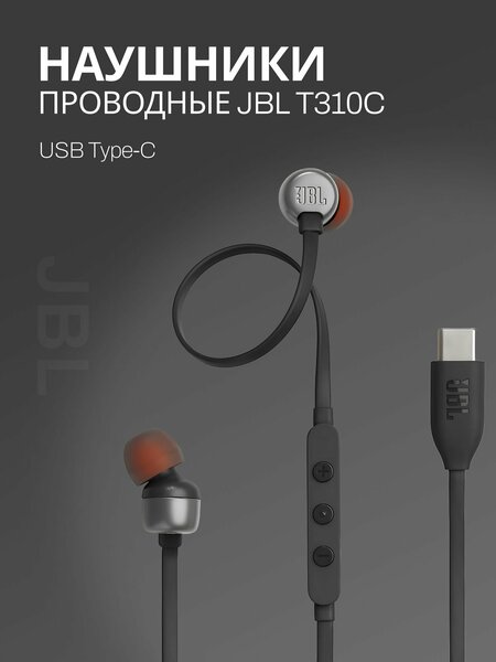Проводные наушники JBL T310С USB Type-C, с микрофоном, чёрные