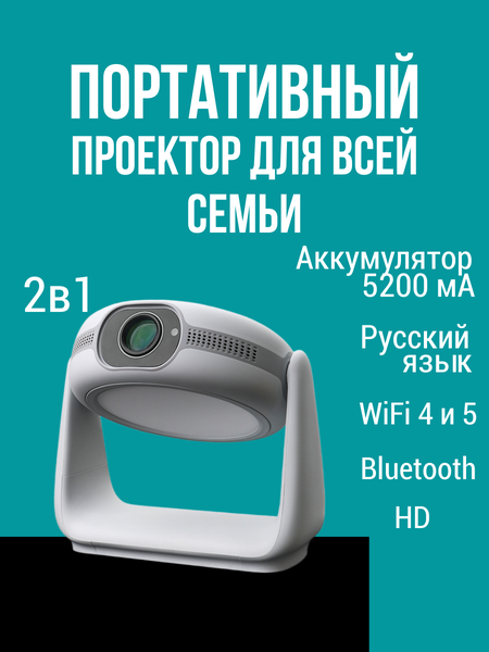 Проектор с HDMI и с аккумулятором и сумкой. Русифицирован. Портативный проектор на системе АНДРОИД 11.0. Проецирует 150-дюймовый киноэкран, при этом яркость и качество полученных изображений Ultra HD. Предусмотрены электронная фокусировка, зумирование и коррекция трапецеидальных искажений. Яркость лучей в 450 ANSI люмен обеспечит четкую картинку как в абсолютной темноте, так и при небольшом дополнительном освещении. Благодаря Wi-FI 2,4 -5G и Bluetooth видео проектор может воспроизводить материалы с телефона. Прибор оснащен оперативной памятью объемом 1Гб и накопителем на 8Гб. За звук отвечают два встроенных динамика. Кинопроектор рекомендуется располагать на расстоянии 1.5-4.0 м от экрана. Встроенная подсветка: Уникальная функция подсветки создает уютную атмосферу, дополняя ваш домашний кинотеатр. Подсветка может использоваться как декоративный элемент или дополнительный источник света. Множество портов для подключения: HDMI, USB, AV позволяют подключать ноутбуки, игровые консоли, флешки и другие устройства.