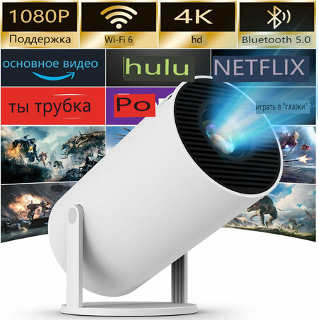 Проектор HY300Pro 4K Android 11 Dual Wifi6 360 MAX BT5.0 1080P - это умный домашний кинотеатр, который обеспечивает высокое качество изображения и звука. Смарт-проектор оснащен встроенным интерфейсом Wi-Fi 6, что обеспечивает более высокую скорость передачи и меньшую задержку передачи. Это позволяет легко и быстро подключаться к смартфонам, ноутбукам и другим устройствам. Портативный проектор HY300Pro оснащен встроенным чипом Bluetooth 5.0 и динамиками. Вы можете улучшить качество звука, подключив проектор к наушникам, динамикам или другим аудиоустройствам. Также можно наслаждаться комфортным аудиовизуальным восприятием непосредственно через динамики проектора. Основание проектора оснащено подставкой, которая позволяет направлять проектор в различных направлениях. Вы можете просматривать изображение под любым углом на расстоянии от 40 до 130 футов, обеспечивая четкое изображение на экране. Проектор поддерживает разрешение 4K 1080P и оснащен проекционным экраном диагональю 40-130 дюймов с оптимальным расстоянием проекции 5,51 фута. Вы можете легко получить лучший проекционный экран благодаря функции автоматической коррекции трапецеидальных искажений по горизонтали. HY300Pro оснащен встроенными разъемами HDMI, USB, 3,5 мм для наушников. Вы можете использовать его для домашнего кинотеатра, вечеринок, работы и многого другого. Соотношение сторон изображения составляет 16:9, количество ЖК-матриц/DMD-панелей - 1.0, тип лампы - LED, срок службы лампы - 45000 часов, световой поток - 360 люмен. Проектор работает на операционной системе Android и поддерживает стандарты HDR. Контрастность составляет 5000:1-10000:1. Вес проектора составляет 1,3 кг, а цвет товара - белый/черный.