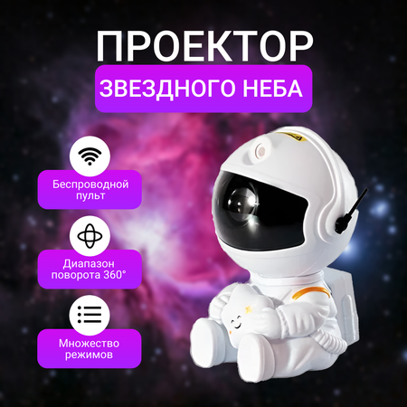 Проектор звездного неба Космонавт с пультом управления. Ночник в детскую комнату и спальню с эффектом северного сияния.
