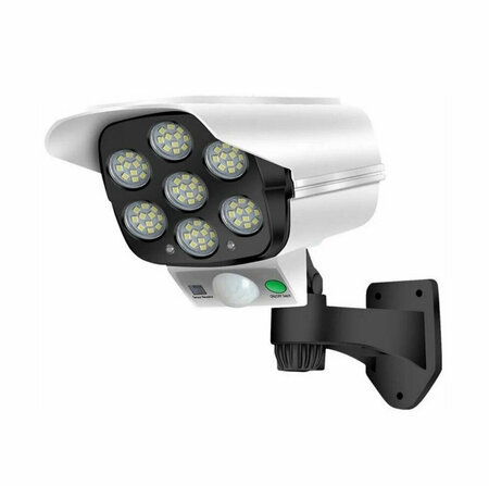 Прожектор уличный фонарь на солнечных батареях с датчиком движения и пультом 77 LED муляж видео камеры