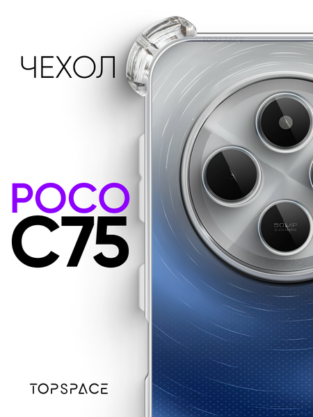 Чехол на Poco C75 /прозрачный противоударный силиконовый бампер с защитой камеры и углов на Поко С75