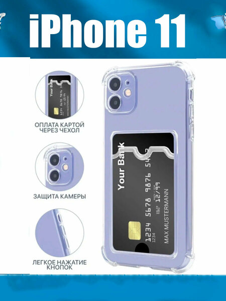 Противоударный силиконовый чехол для телефона iPhone 11 с карманом для карты - отличный выбор, сочетающий защиту с возможностью бесконтактной оплаты. Встроенный картхолдер для карт позволяет удобно оплачивать покупки не доставая карты. Кармашек для карт можно использовать не только для банковских карт, но и для проездных билетов тройка, пропуска. Чехол на Айфон 11 обладает хорошей защитой камеры - в нем предусмотрены отдельные вырезы для камер и специальный бортик высотой 2 мм вокруг всего блока камер. Дополнительную защиту дают усиленные углы. Благодаря им между углами смартфона и чехла образуются воздушные карманы, которые амортизируют удары. Чехол защищает не только заднюю поверхность смартфона, но и экран - он на 1 мм выступает над поверхностью экрана. А качественный силиконовый бампер обеспечивает легкое нажатие кнопок. Чехол - бумажник на Айфон 11 можно не снимать во время беспроводной зарядки смартфона. Защитное стекло и защитная пленка идеально совместимы с чехлом.