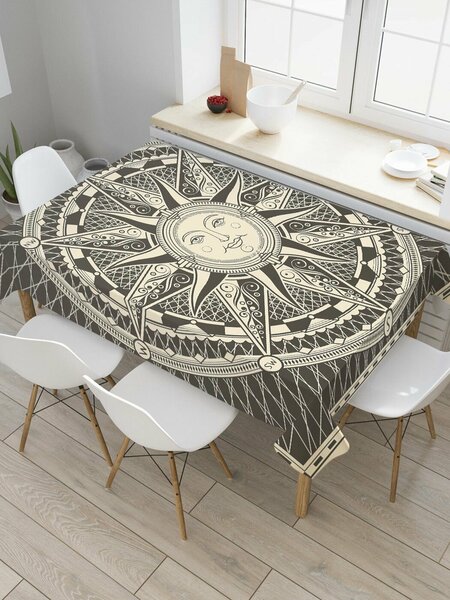 Прямоугольная водоотталкивающая тканевая скатерть на стол JoyArty с рисунком "Средневековое солнце" 145 на 180 см