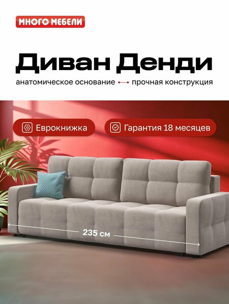 Диван DANDY Euro SE - с ним так легко создать настоящий уют и домашний комфорт. Мягкие приспинные подушки и независимый пружинный блок в основании обеспечат максимальный комфорт во время отдыха. Простой и надежный механизм трансформации еврокнижка позволяет с легкостью раскладывать диван в удобную, полноценную, двуспальную кровать с идеально ровным спальным местом. Преимущества ткани MONOLIT: