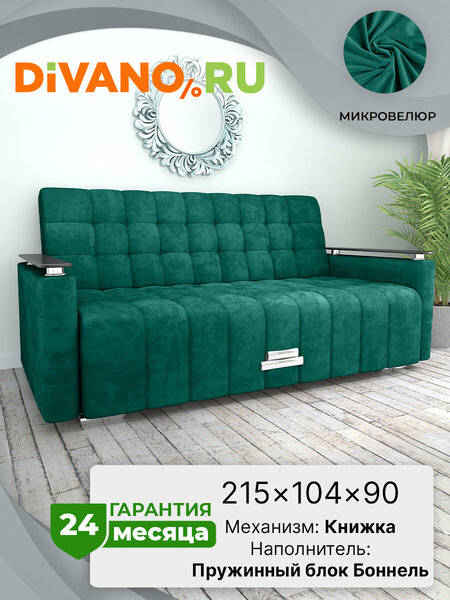Прямой диван Мадрид - это изысканное дополнение к вашему интерьеру, которое обеспечит максимальный комфорт в гостиной или спальне. Диван имеет размеры 215х104х90 см, что позволяет разместить его даже в небольших помещениях. Спальное место размером 130х182 см обеспечивает комфортный отдых и сон. Диван оснащен механизмом трансформации "книжка", что позволяет легко и быстро превратить его в удобное спальное место. Наполнитель из пружинного блока Боннель обеспечивает оптимальную поддержку тела и долговечность. Обивка из микровелюра изумрудного цвета придает дивану изысканный вид и делает его приятным на ощупь. Деревянный каркас и ножки из массива дерева добавляют изделию прочность и устойчивость. Диван Мадрид дизайн 3 оснащен бельевым ящиком, что позволяет хранить постельные принадлежности и другие вещи. Максимальная нагрузка на одно место составляет до 110 кг, что делает его подходящим для людей разного телосложения. Выбирая прямой диван Мадрид дизайн 3, вы получаете стильный, комфортный и функциональный предмет мебели, который станет изюминкой вашего интерьера.