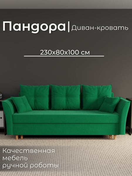 Название товара: Диван-кровать YORCOM "Пандора". Производитель: YORCOM. Этот диван-кровать является прекрасным решением для тех, кто ценит комфорт, стиль и универсальность. Изготовленный из прочного велюра, он имеет элегантный зеленый цвет и механизм "евро-книжка", что делает его легко трансформируемым и подходящим для любого интерьера. Благодаря съемным подушкам, диван можно легко адаптировать под ваши потребности и обеспечить дополнительное удобство. Его высота, ширина и глубина обеспечивают удобную посадку, а размеры спального места позволяют разместить до 2 человек. Диван оснащен ящиком для хранения белья и раскладным механизмом, что делает его еще более практичным и удобным. Он идеально подходит как для офиса, так и для дома, и может использоваться как для сна, так и для отдыха. Благодаря стилям "лофт" и "классика" диван "Пандора" прекрасно сочетается с любым интерьером. "Пандора" - это идеальный выбор для тех, кто хочет получить комфорт, стиль и практичность по доступной цене.