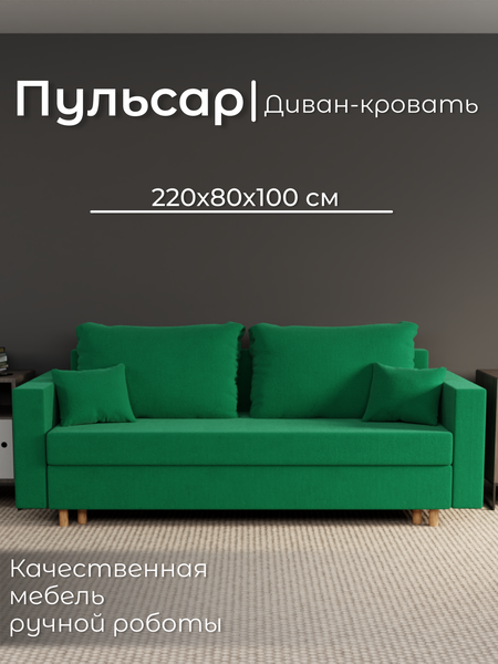 Название товара: Диван-кровать "Пульсар" зеленый Производитель: YORCOM Этот диван-кровать - прекрасное решение для тех, кто ценит комфорт и стиль. Изготовленный из прочного материала велюра и имеющий элегантный зеленый цвет, он легко трансформируется и подходит для любого интерьера благодаря механизму "евро-книжка". Диван оснащен съемными подушками, что позволяет легко адаптировать его под ваши потребности. Его высота и глубина обеспечивают комфортную посадку, а спальная зона позволяет разместить до двух человек. Он оснащен ящиком для белья и раскладным механизмом, который делает его еще более удобным и практичным. Диван идеально подходит как для использования в офисе, так и дома, а также может быть использован как для сна, так и отдыха. Особенности: Раскладная конструкция, подлокотники, съемные подушки. Материал каркаса - ДВП, ЛДСП и массив дерева. Обивка - текстиль. Подлокотники жесткие. Стиль - классический, лофт минимализм. "Пульсар" - идеальный выбор для тех, кто ищет комфорт, стиль и удобство по доступной цене!
