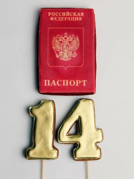 Набор имбирных, ароматных пряников на торт на 14 лет Паспорт. Пряник можно установить на праздничный торт в виде топпера или подарить без повода. Полностью натуральный состав. Ручная работа! Украшения для торта. Изображение выполнено с помощью пищевой печати по глазури, цифры покрыты пищевым кандурином (золото). Высота паспорта составляет 11см, высота цифр 8. В прянике есть отверстие для установления шпажки. Пряник упакован в индивидуальную упаковку (слюда) и обернут в пупырчатую пленку. Шпажки для топпера входят в состав набора. Продукция Катюшины пряники сертифицирована и изготавливается в соответствии с ТУ . Декларация о соответствии еаэс. Срок годности: 6 месяцев. Цвета пряника может незначительно отличаться от оригинала - это ручная работа.