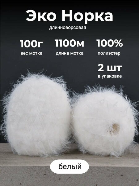 Пряжа эко норка с ворсом от Макси Пряжа — идеальный выбор для создания уютных и стильных изделий. Один моток 550м в весе 100 гр , в упаковке два мотка пряжи. Ее пушистая текстура придает вязаным вещам невероятную мягкость и объем, а состав из 100% полиэстера обеспечивает прочность и долговечность. Эта пряжа станет отличным решением для вязания шарфов, шапок, свитеров и пледов, которые согреют вас в холодные дни и добавят нотку роскоши вашему образу. ЭКО норка - пушистая пряжа для вязания, которая абсолютно не лезет. Вязаное полотно получается невозможно мягоньким и нежным как пух норки. В одну нить можно вязать на спицах 3-3.25 мм; в две нити на спицах 3.5-4 мм. Ниточка из эко пуха норки позволит создать неповторимые пушистые изделия и обязательно вам понравится. Вы получите удовольствие от процесса и от результата! Подойдет как пряжа для носков, для вязания шапки изделия получаются мягкие теплые как шерсть. Можно использовать для детей для рукоделия. Пух норки это пряжа для вязания которая не оставит вас равнодушными !