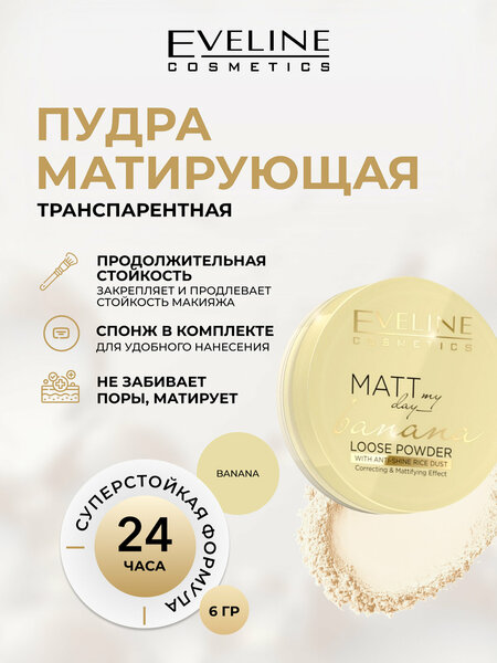 6гр - 1 штука, EVELINE.ТРАНСПАРЕНТНАЯ МАТИРУЮЩАЯ ПУДРА-BANANA серии MATT MY DAY LOOSE POWDER