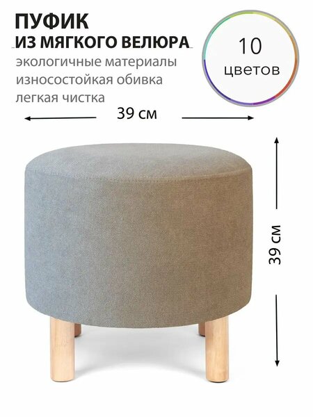 Круглый пуфик для прихожей, гостиной, спальни и туалетного столика на деревянных ножках