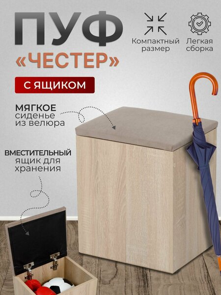Представляем вашему вниманию пуф Честер тип 1, который станет идеальным дополнением для вашего интерьера. Изготовленный в цвете дуба сонома и оснащенный светло-серой обивкой, этот пуф не только привносит уют в прихожую, но и обладает высокой функциональностью. Благодаря размеру 27х33х42 см, он прекрасно впишется в любое пространство, не занимая много места. Этот элемент мебели идеально подходит для размещения в прихожей или спальне. Он может служить как стильная банкетка, на которую удобно присесть, чтобы надеть обувь, так и как практичный пуф с ящиком для хранения. Открытый ящик позволяет удобно разместить различные мелочи, такие как обувь, аксессуары или даже игрушки, помогая вам поддерживать порядок. Пуф Честер также станет отличным решением для использования в качестве табурета на кухне или банкетки возле туалетного столика. Он сочетает в себе элегантный дизайн и практичность, что делает его универсальным объектом для любого помещения. Легкий и компактный, он прост в перемещении и эксплуатации. Если вам нужна удобная и стильная мебель, которая поможет организовать пространство, пуф с ящиком для хранения станет отличным выбором. Не упустите возможность добавить этот функциональный предмет в ваш дом, который станет не только полезным, но и эстетически привлекательным. Пуф Честер тип 1 — это идеальное решение для современных интерьеров, где ценится стиль и практичность. ! Цветопередача может отличаться от оригинала.