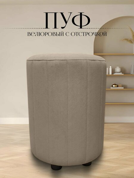 Пуфик в прихожую велюровый круглый с вертикальной отстрочкой станет отличным и стильным дополнением к Вашему интерьеру. Благодаря круглой форме и компактным размерам пуф подойдет для любого интерьера, будь то прихожая, спальня, гостиная или в детская комната. Идеален для небольших помещений гардеробной, коридора, кабинета, лоджии, балкона, офиса, салона. Декоративная отделочная строчка придает оригинальный и стильный вид. Используйте его как дополнительное мягкое сидение к столу. Отдыхая в кресле или на диване, это идеальное решение в качестве подставки для ног. Благодаря своим компактным размерам банкетка идеально подходит для туалетного, прикроватного или косметического столика. Каркас пуфа сделан из высокопрочной фанеры. Наполнение пенополиуретан, это мебельный поролон, который обеспечивает отличную мягкость сидения. Обивка антивандальный велюр, что делает его мягким и приятным на ощупь. Ткань обладает эффектом «антикоготь». 4 пластиковые ножки обеспечивают дополнительную устойчивость и прочность, таким образом пуфик способен выдержать большую нагрузку, до 150 кг. Высота сидения 45 см, ширина 32 см, вес 2,5 кг. Благодаря своей эргономичности и легкости пуфик легко перемещается из одного помещения в другое. А при необходимости его просто можно спрятать под столешницей. Мы предлагаем большой ассортимент по выгодным ценам. Широкая цветовая гамма позволит Вам подобрать банкетку как дополнение к мебели любого стиля – классического или современного. Обращаем Ваше внимание, что в реальности цвет ткани может немного отличаться от представленного на фото, из-за различной цветопередачи устройств при просмотре. Этот миниатюрный элемент декора очень популярен в качестве подарка родным и близким на День рождения, новоселье, годовщину свадьбы, Новый год или любой другой праздник. Не упустите возможность сделать Вашу прихожую стильной и уютной с помощью наших пуфиков.