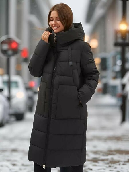 Стильный женский пуховик с капюшоном длинный зимний - идеальный выбор для зиму и осень. Эта удлиненная зимняя куртка отлично подходит для холодных сезонов, обеспечивая комфорт и защиту от ветра. Легкая конструкция позволяет носить её ежедневно, не ощущая тяжести. Утепленная внутренняя часть сохраняет тепло, что делает одежду незаменимой в морозные дни. Эта верхняя одежда куртка теплая женская предназначена как для осенних прогулок, так и для зимних путешествий. Дутая структура создает дополнительную защиту от холода. Курточка женская оверсайз подходит для множества размеров, включая большие размеры, что обеспечивает удобство и свободу движения даже беременным женщинам. Благодаря своему универсальному дизайну, она станет отличным дополнением гардероба любой женщины. Демисезонная куртка универсальна: можно носить на улице в демисезон или сделать частью образа на раннюю осень. Даже коричневая или хаки версия этого пуховика прекрасно гармонирует с повседневными нарядами. Пуховики всегда были популярны среди женщин благодаря своей практичности и стильному внешнему виду. Зимние модели обеспечивают высокую степень утепления, а капюшон добавляет дополнительный комфорт в ветреную погоду. Это делает такую одежду подходящей как для коротких прогулок по городу, так и для длительных выходов на природу в холодное время года. Женщинам часто нужен уютный предмет одежды для различных мероприятий на открытом воздухе в холодное время года. Таким образом, легкая курка становится не только спасением от низких температур, но и центральным элементом образа. Модель представлена в различных стилях - от классического силуэта до современных решений оверсайз формата. Такой подход позволяет адаптировать изделие под любые вкусовые предпочтения. Осенний или зимний вариант такой одежды легко сочетать с другой верхней одеждой или аксессуарами. При этом коричневая или темно-серая расцветка позволяет создать множество эффектных комбинаций без лишнего усилия. Цвет - черный