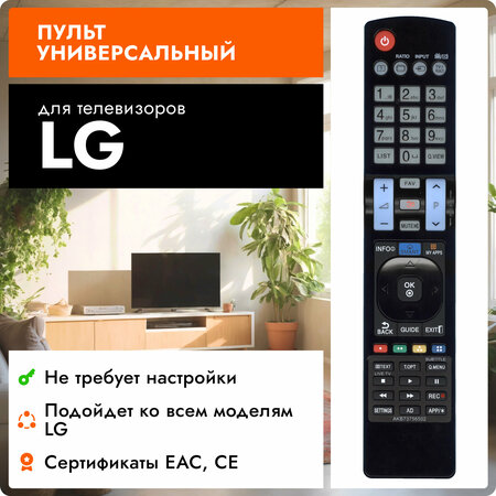Этот пульт ДУ подойдет для любого телевизора LG т. к. все телевизионные ПДУ этой марки работают на одном сигнале.