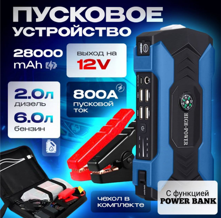 Пусковое портативное зарядное устройство для автомобиля - это незаменимый помощник для каждого автовладельца. Оно обеспечивает быстрый и безопасный запуск двигателя, а также зарядку аккумулятора и других мобильных устройств. Устройство оснащено встроенной батареей емкостью 28000 мА·ч, что позволяет ему обеспечивать длительный срок службы. Напряжение питания от сети составляет 12 В, а максимальный ток пуска достигает 800 А. Пусковое устройство имеет 4 дополнительных разъема USB, что позволяет заряжать мобильные устройства одновременно. Также в комплекте идут сетевой адаптер питания (220В), автомобильный адаптер (12В), провода прикуривания и кабель-переходник USB — Type-C 3 в 1. Устройство имеет защиту от короткого замыкания, что обеспечивает безопасность его использования. Пусковое портативное зарядное устройство выполнено в стильном черном и синем цвете из ABS пластика. Длина устройства составляет 17,8 см, что делает его компактным и удобным для хранения. В комплект поставки входят инструкция по эксплуатации и все необходимые аксессуары для начала использования устройства.