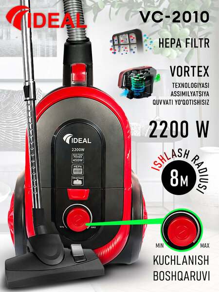 Пылесос Ideal VC-2010 - это мощный и эффективный помощник в уборке вашего дома. Пылесос оснащен мощным двигателем на 2200 Вт, что обеспечивает высокую мощность всасывания 450 Вт. Это позволяет эффективно собирать пыль и грязь с различных поверхностей, включая ковры и мягкую мебель. Емкость пылесборника составляет 2 литра, что позволяет использовать пылесос в течение длительного времени без необходимости его очистки. Уровень шума пылесоса составляет всего 82 дБ, что делает его работу практически бесшумной. Это позволяет использовать его даже в ночное время, не мешая сну. Пылесос оснащен HEPA фильтром, который обеспечивает высокую степень очистки воздуха от пыли и аллергенов. Это особенно важно для людей с аллергией или чувствительным дыханием. Рабочий радиус пылесоса составляет 8 метров, что позволяет охватить большую площадь за один проход. Пылесос оснащен автоматической смоткой шнура, что делает его хранение и транспортировку более удобными. В комплект пылесоса входят различные насадки, такие как щетка Ultra Clean для пыли, щелевая насадка и щетка для чистки мягкой мебели. Это позволяет использовать пылесос для уборки различных поверхностей и труднодоступных мест. Пылесос изготовлен в Узбекистане по турецким технологиям и имеет гарантийный срок 3 года.