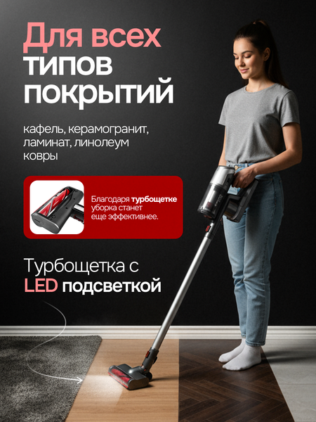 ✔ Турбощетка с LED-подсветкой – видимость в труднодоступных местах