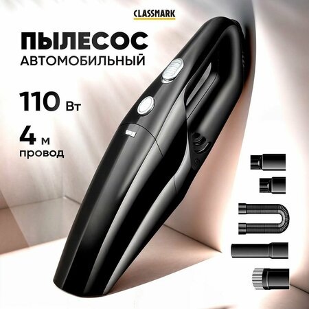Портативный ручной пылесос Classmark удобен при использовании в легковом и грузовом автомобиле, т. к. длина шнура (4 метра) позволяет дотянуться до задних сидений и багажника и пропылесосить все щели, разъемы и зоны под водительским креслом. Мощность устройства 110 Вт, сила всасывания 6000-7000 Па поможет быстро устранить пыль и грязь в салоне авто и легко вычистит коврик в багажник автомобиля. Вместительный пылесборник: мусор накапливается в пластиковом, легком в уходе контейнере, который плотно прижимает прокладка и многоразовый моющийся фильтр, надёжно удерживающий пыль внутри. Фильтр легко промывается под струей воды. В комплект входят тонкая насадка для уборки и чистки салона авто и удлинительная трубка / гибкий гофровый шланг. Сетевой пылесос имеет длину провода 4 метра и легко подключается к порту прикуривателя. Пылесос автомобильный не теряет мощность всасывания в процессе работы и не ограничен по времени пользования, что не сможет сделать беспроводной пылесос! Авто пылесос выполнен из прочного пластика и оснащен удобной ручкой. Габариты позволяют хранить его в багажнике вместе с 2сменными насадками для разных видов чистки ткани, резиновых ковриков и пластика. Ручной аппарат можно убрать в удобную мини сумочку / чехол. Портативные пылесосы - незаменимая вещь в машине, они надежны, долговечны и легко моются. Зарядка осуществляется от адаптера прикуривателя 12V (классическая аккумуляторная), переходник не потребуется. Универсальная для любых марок авто. За счет своих размеров и формы, можно использовать как вертикально, так и горизонтально, что особенно важно для клининга в узких местах, позволяет достать до большего количества труднодоступных пространств, где часто можно обнаружить крошки. Широкий функционал и технические особенности пылесоса делают его одним из самых интересных решений для автомобилистов в 2022 году. Отличный подарок на Новый Год 2023. Пылесос в машину органично дополнит автомобильный набор. Лучший подарок мужчине, будь то ваш коллега, брат, отец или муж и женщине водителю. Маленькие и мощные машинные пылесосы любят все автовладельцы. Пылесос для авто просто незаменим при комплексной уборке и химчистке / мойке авто от волос домашних животных (кошек и собак), в путешествиях и на даче. Автомобильный пылесос мощный позволит держать ваш салон и багажник в чистоте, ведь это идеальный аксессуары в салон и багажник автомобиля. Совокупность мощности и качества делают его настоящим лидером среди автомобильной электроники и автомобильных товаров - автотоваров. Обслуживание и использование устройства простое справиться даже ребенок. Современный, надежный дизайн ни оставит вас равнодушным