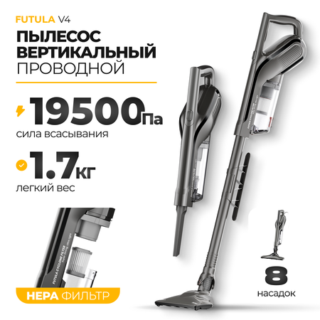 Пылесос для дома Futula Vacuum Cleaner V4, серый проводной, вертикальный, с Hepa фильтром
