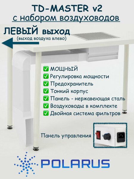 Пылесос для маникюра встраиваемый Polarus профессиональный TD-MASTER (Левый выход, с набором воздуховодов)