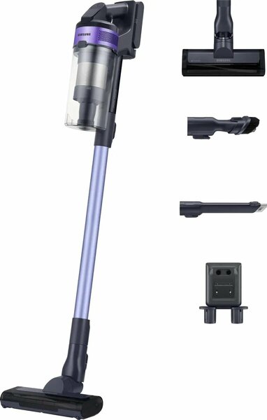 Пылесос Samsung Jet VS15A6031R4 - это вертикальный беспроводной пылесос, который обеспечивает эффективную уборку различных типов поверхностей. Благодаря инверторному мотору, мощность всасывания достигает 150 Вт, что позволяет легко убирать различные поверхности. Технология Jet Cyclone обеспечивает чистый воздух и постоянную мощность всасывания. 27 отверстий циклонной системы формируют оптимальный воздушный поток, уменьшая потери мощности всасывания. Насадка Jet Fit brush позволяет собирать мелкие частицы пыли как на коврах, так и на твердых полах. Благодаря поворотной на 180 градусов головке, вы можете легко очищать каждый уголок. Щетка легко отсоединяется одним щелчком для быстрого удаления грязи и обеспечения гигиенического ухода. Многослойная система фильтрации задерживает 99,999% пыли и уменьшает количество аллергенов. Основной циклон и фильтр с металлической решеткой улавливают крупные частицы пыли. Затем реактивный циклон и микрофильтр улавливают мелкую пыль, а фильтр тонкой очистки задерживает микрочастицы. Зарядная станция 2-в-1 позволяет хранить и заряжать пылесос. Вы можете установить станцию на стену или поставить ее в любом удобном месте для зарядки батареи. Аккумулятор обеспечивает мощность в течение 40 минут, а спустя 500 циклов заряда-разряда аккумулятор сохраняет до 70% первоначальной емкости. Пылесборник, включая мульти-циклонную систему, можно легко промыть водой. Контейнер легко снимается, не отсоединяя телескопическую трубку от корпуса пылесоса. Облегченная конструкция пылесоса обеспечивает больший контроль и комфортное использование, а также снижает нагрузку на ваши запястья. Корпус пылесоса весит всего 1,48 кг, что легче на 21% обычных беспроводных пылесосов Samsung. В комплекте с пылесосом идут щелевая насадка, зарядное устройство и фильтр тонкой очистки. Основные характеристики: - Тип: вертикальный пылесос - Тип уборки: сухая - Тип пылесборника: контейнер - Объем пылесборника: 0.8 л - Мощность всасывания: 150 Вт - Тип аккумулятора: Li-Ion - Напряжение аккумулятора: 21.6 В - Время работы от аккумулятора: 40 минут - Уровень шума: 86 дБ - Цвет товара: фиолетовый - Вес: 2,3 кг - Высота: 112 см - Ширина: 25 см - Глубина: 20 см Выбирая пылесос Samsung Jet VS15A