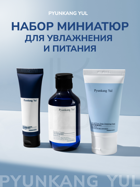 Пенка Low pH Pore Deep Cleansing Foam (40 мл) - нанесите достаточно количество средства на влажную кожу и сделайте лёгкий массаж. Смойте средство обильным количеством тёплой воды. Увлажняющая эссенция-тонер для лица Pyunkang Yul - 1) Пропитайте средством ватный диск. Мягкими движениями протрите кожу лица. 2) Переверните диск и нежно похлопайте по нему подушечками пальцев. 3) Закончите нанесение легкими прижимающими движениями ладоней. Гипоаллергенный питательный крем для лица Pyunkang Yul - нанесите необходимое количество крема на очищенную и тонизированную кожу на последнем этапе ухода.