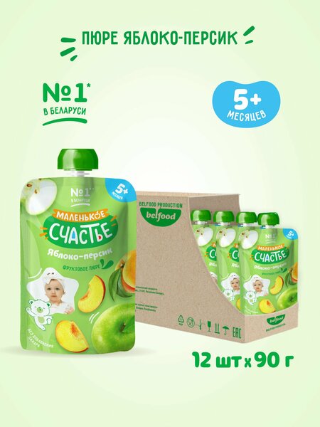 Пюре детское "Маленькое счастье" - это натуральный и витаминизированный продукт, разработанный специально для детей с 5 месяцев. В составе пюре используются только фрукты - яблоко и персик, что делает его безопасным и полезным для малышей. Продукт упакован в мягкую упаковку (пауч), которая обеспечивает удобство использования и хранения. Пюре удобно брать с собой, в дорогу. Вес одной упаковки составляет 90 грамм, что позволяет использовать пюре в течение одного приема пищи. Фруктовое пюре "Маленькое счастье" не содержит ГМО, консервантов, сахара, глютена, отдушек и искусственных красителей. Это делает его безопасным для здоровья ребенка и позволяет использовать в качестве первого прикорма. Маленькое счастье с яблоком и персиком станет отличным выбором для родителей, которые заботятся о здоровье и правильном питании своего ребенка. Рекомендации по употреблению: рекомендуется употреблять детям с 5 месяцев, начиная с 0,5 чайной ложки в день, увеличивая к 12 месяцам до 100 г в день. Открытую упаковку хранить в холодильнике при температуре от 0 ºС до 6 ºС не более суток. Состав: пюре яблочное, пюре из персиков. Не оставляйте ребёнка без присмотра во время кормления. В случае употребления пюре ребёнком из дозатора, продукт дальнейшему хранению не подлежит.
